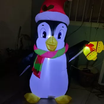 Turn your outdoor space into a winter wonderland with this adorable 5-foot inflatable penguin. Standing tall and smiling bright, it adds instant charm to your lawn, driveway, porch, or garden. The built-in LED lights make it glow beautifully at night, creating a warm and welcoming holiday scene that neighbors and guests will love. From cozy family evenings to cheerful parties, this festive decoration sets the mood in seconds.