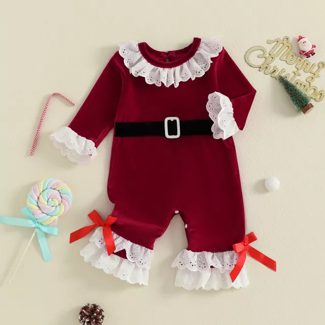 What truly sets this romper apart is the attention to detail. The lace ruffled trim adds a touch of elegance, while the printed Santa-style belt brings the whole festive look together. It’s not just a costume — it’s a memorable outfit that creates picture-perfect holiday moments you’ll cherish for years.