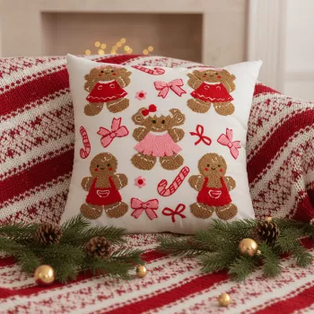 Christmas Embroidered Throw Pillow Cover 18×18 in Cotton Blend