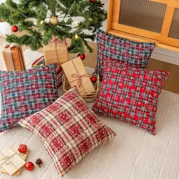Christmas Plaid Throw Pillow Covers for Sofa & Bed Decor