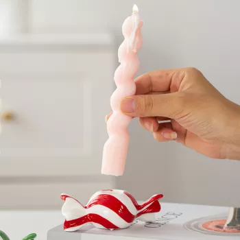 Nordic Striped Candy Ceramic Candlestick Holder – Long Pole Decor