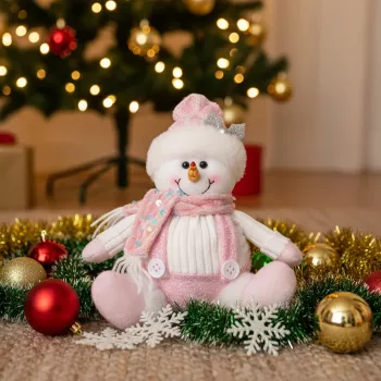 Sequined Sitting Christmas Doll Ornament – Pink Reindeer, Snowman & Santa