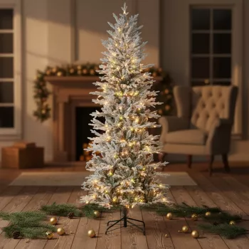 Snow-Flocked Nordic Pine Christmas Tree – Easy Indoor Assembly