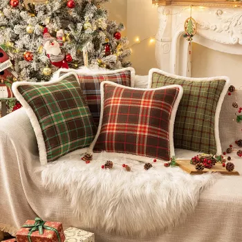 Plush Plaid Christmas Pillowcase Soft Faux Fur Cushion Cover