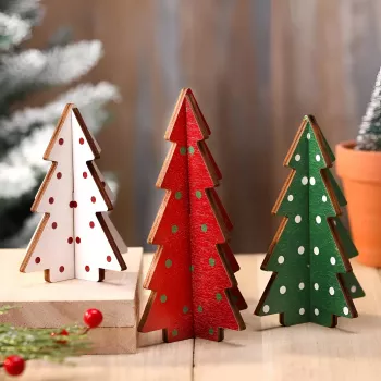 Polka Dot Wooden Christmas Tree Set, 3-Piece Desktop Holiday Decor