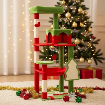 Christmas Multi-Level Cat Tree Tower with Hammock & Scratching Posts