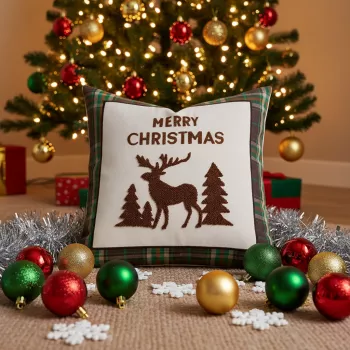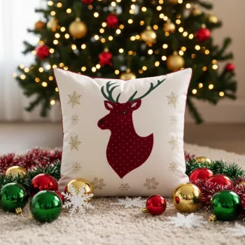 Embroidered Christmas Throw Pillow Cover 18×18 Inches Holiday Decor