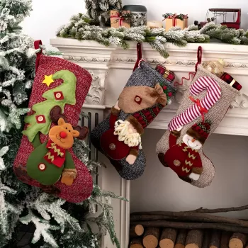 Large 19” 3D Christmas Stocking – Santa, Snowman & Reindeer Decor