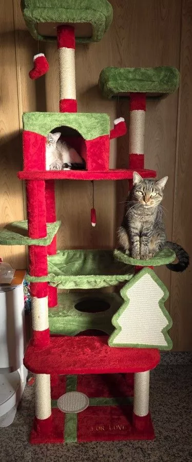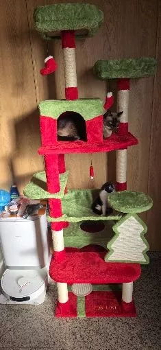 This cat tree is perfect for use all year round, but especially during the holiday season when your home is decorated and cozy. It gives your cat a designated spot to play while keeping them away from your Christmas tree and furniture. It’s ideal for indoor cats of all ages, whether they love to climb, scratch, or simply relax and observe their surroundings.