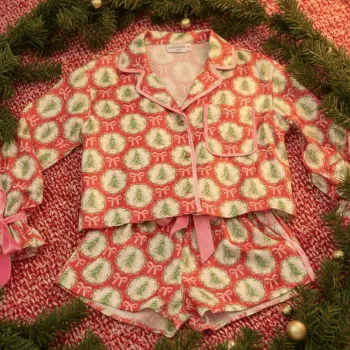 Women’s Christmas Ribbon Bow 2-Piece Pajama Set, Long Sleeve & Shorts