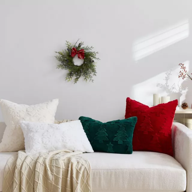 This cushion cover is made from high-quality 100 percent polyester with a smooth knitted finish and plush feel. It is soft to the touch, gentle on skin, and durable enough for everyday use. The snowflake tree-inspired design blends modern minimalism with classic Christmas style, making it perfect for both festive seasons and cozy winter decor.