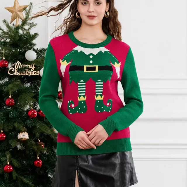 I grabbed this festive pullover for a themed party and ended up wearing it the entire weekend. The knit is warm but not too heavy, which makes it perfect for chilly weather. The elf-leg design is cute without being overwhelming, adding a touch of humor to holiday outfits. I wore it while shopping and two people commented on how fun it looked. It washes well and keeps its shape nicely. It’s quickly becoming a seasonal staple.