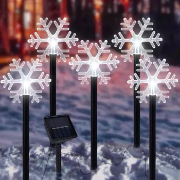 Solar Snowflake Pathway Lights, 5-Pack with 8 Modes for Outdoor Decor