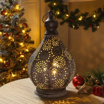 Moroccan Style Battery Table Lantern – Cordless Metal Decorative Lamp