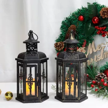 Vintage 10-Inch Black Metal Hanging Candle Lantern Decor