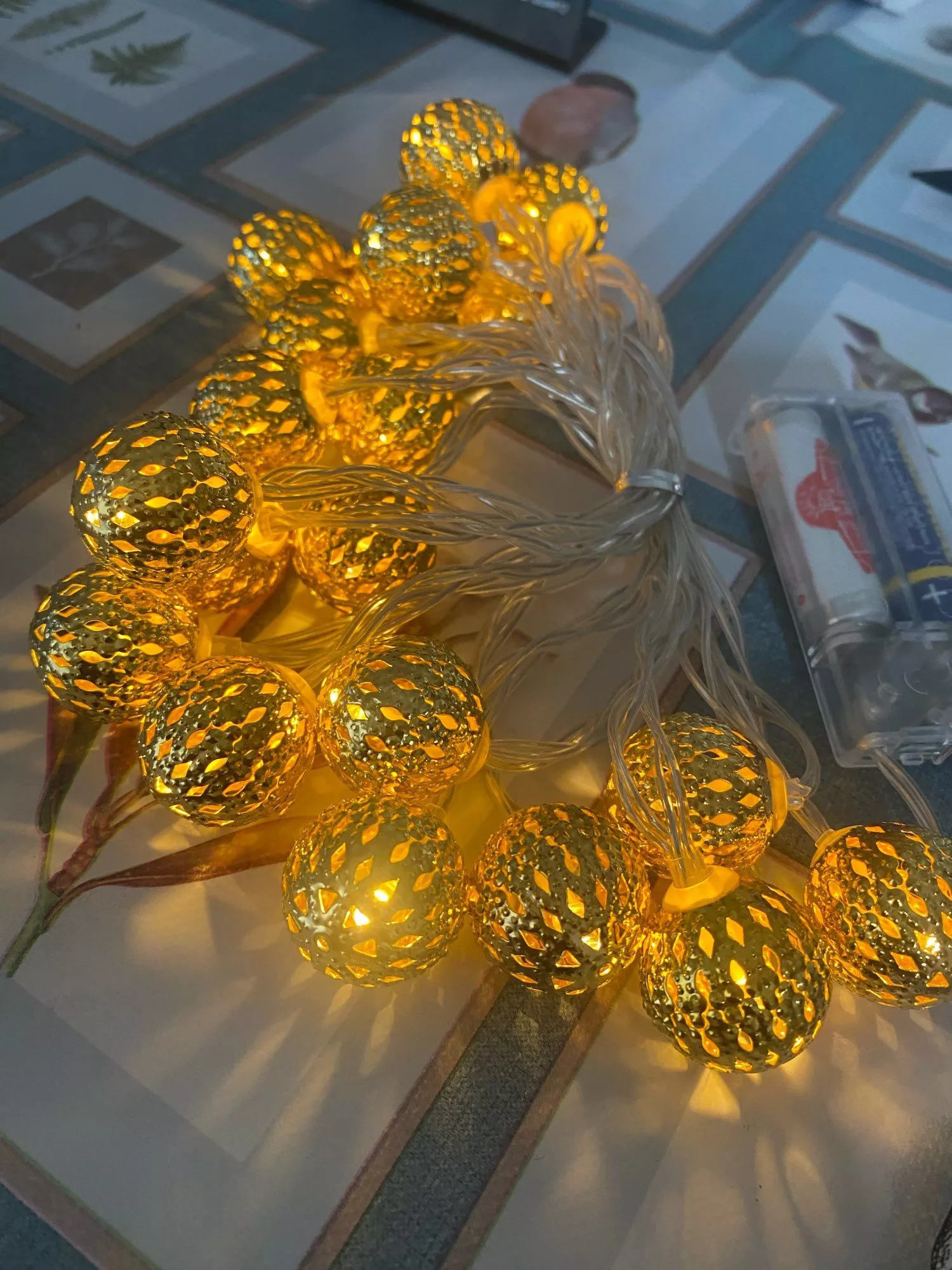 Transform your space with these charming Moroccan ball string fairy lights, designed to add a warm, cozy sparkle to any setting. With beautifully crafted iron ball covers and a soft warm white glow, they turn ordinary areas into inviting, festive spaces. Whether you’re decorating for the holidays, a special event, or simply upgrading your everyday ambiance, these lights bring instant charm and comfort.