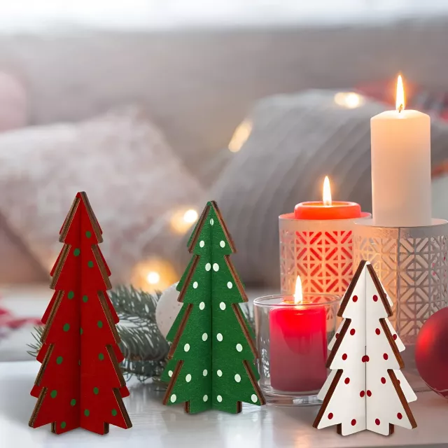 Bring a touch of festive warmth to your home with this delightful 3-piece wooden Christmas tree set. Designed with a playful polka dot pattern and smooth natural wood finish, these mini trees add instant holiday charm without overwhelming your space. Perfect for desktops, shelves, mantels, or coffee tables, they create a cozy seasonal vibe in just seconds.