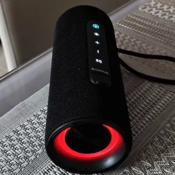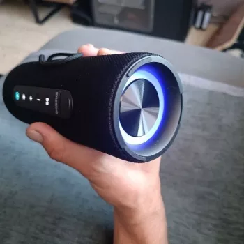 This portable speaker has been a life saver on our camping trips. Its long-lasting power means we can listen to tunes all night without worrying about recharging.