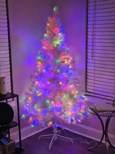 I’ve owned a lot of holiday trees over the years, but this one stands out for its beautiful glow and the way the rose-tinted tinsel sparkles even in daylight. At night the warm lights create such a soothing and elegant atmosphere that I find myself leaving it on longer than planned. Assembly was simple, and the branches fluff out nicely, giving it a full appearance that doesn’t look cheap. Friends who’ve visited keep commenting on how unique and classy it looks. It has added a surprisingly luxurious feel to my living room without requiring much effort at all.