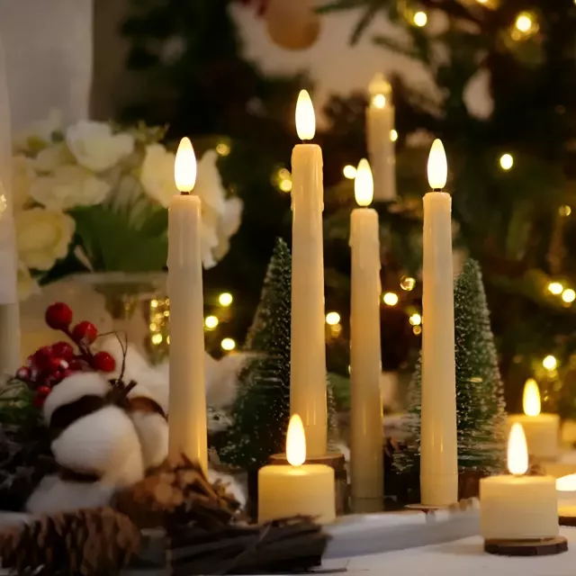 Transform your home with the cozy glow of these elegant flameless LED taper candles. Perfect for dinners, weddings, birthdays, or simply adding a touch of charm to your living room, these candles create a warm, inviting atmosphere without the worry of open flames. The lifelike 3D flickering flame mimics real candlelight, dancing gently to create a stunning visual effect that enhances any setting.