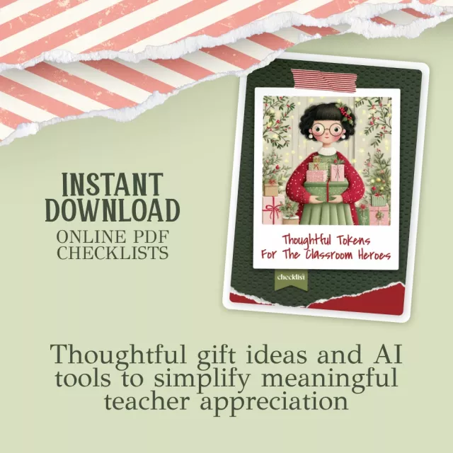 This checklist is ideal for busy parents, thoughtful students, classroom volunteers, and anyone looking to express genuine appreciation during the holidays. If you want meaningful, polished, and personalized gift ideas without endless searching, this guide is made for you.