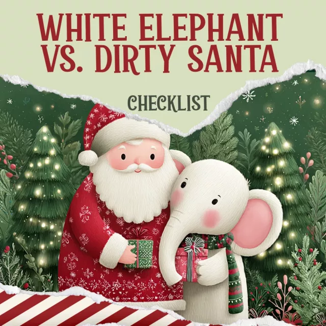 The White Elephant vs. Dirty Santa Checklist is perfect for anyone hosting a holiday gift exchange, from family gatherings to office parties. If you’re ready to take your gift exchange game to the next level and add a bit of friendly competition and chaos to the festivities, this checklist is exactly what you need. It’s ideal for anyone looking for a stress-free, organized way to host a memorable and fun event that keeps everyone laughing from start to finish!